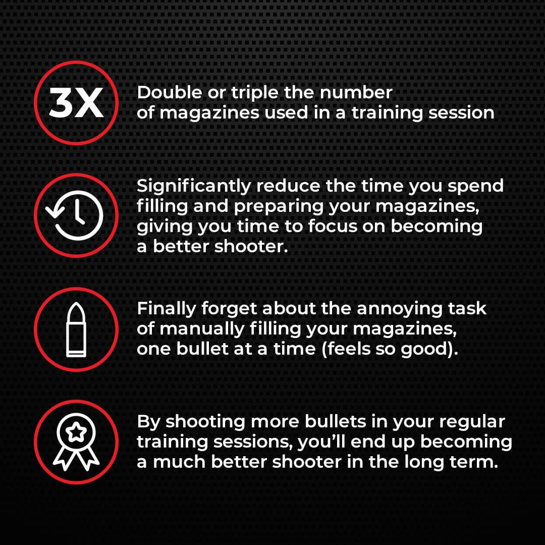 Our Loader works with nearly all 9mm,10mm .357 Sig, .40, .45ACP, and .380ACP caliber, and 1911 magazines, as well as all single and double-stack magazines. If it doesn't work,we accept all returns without any question.